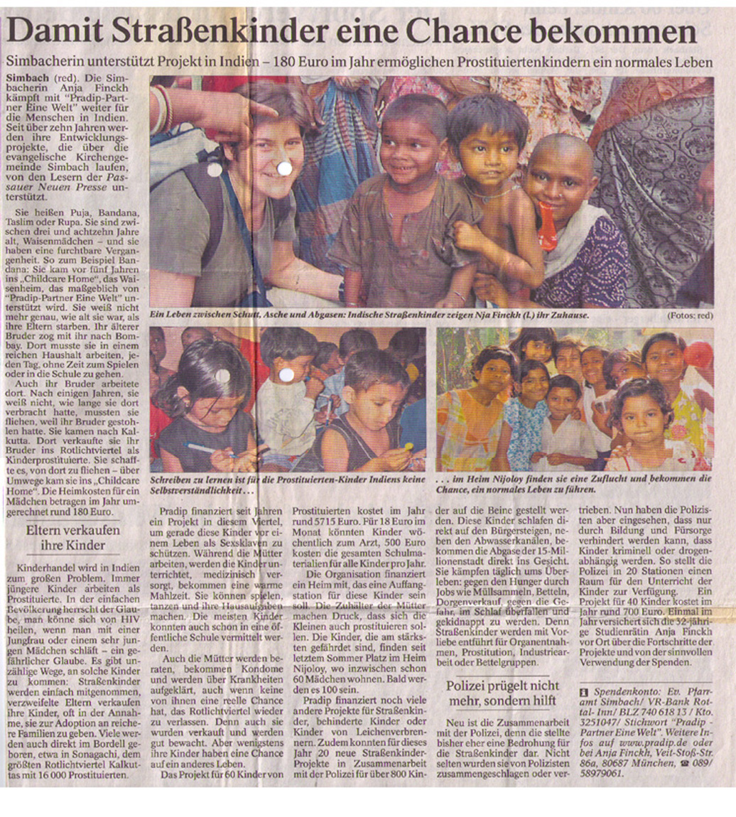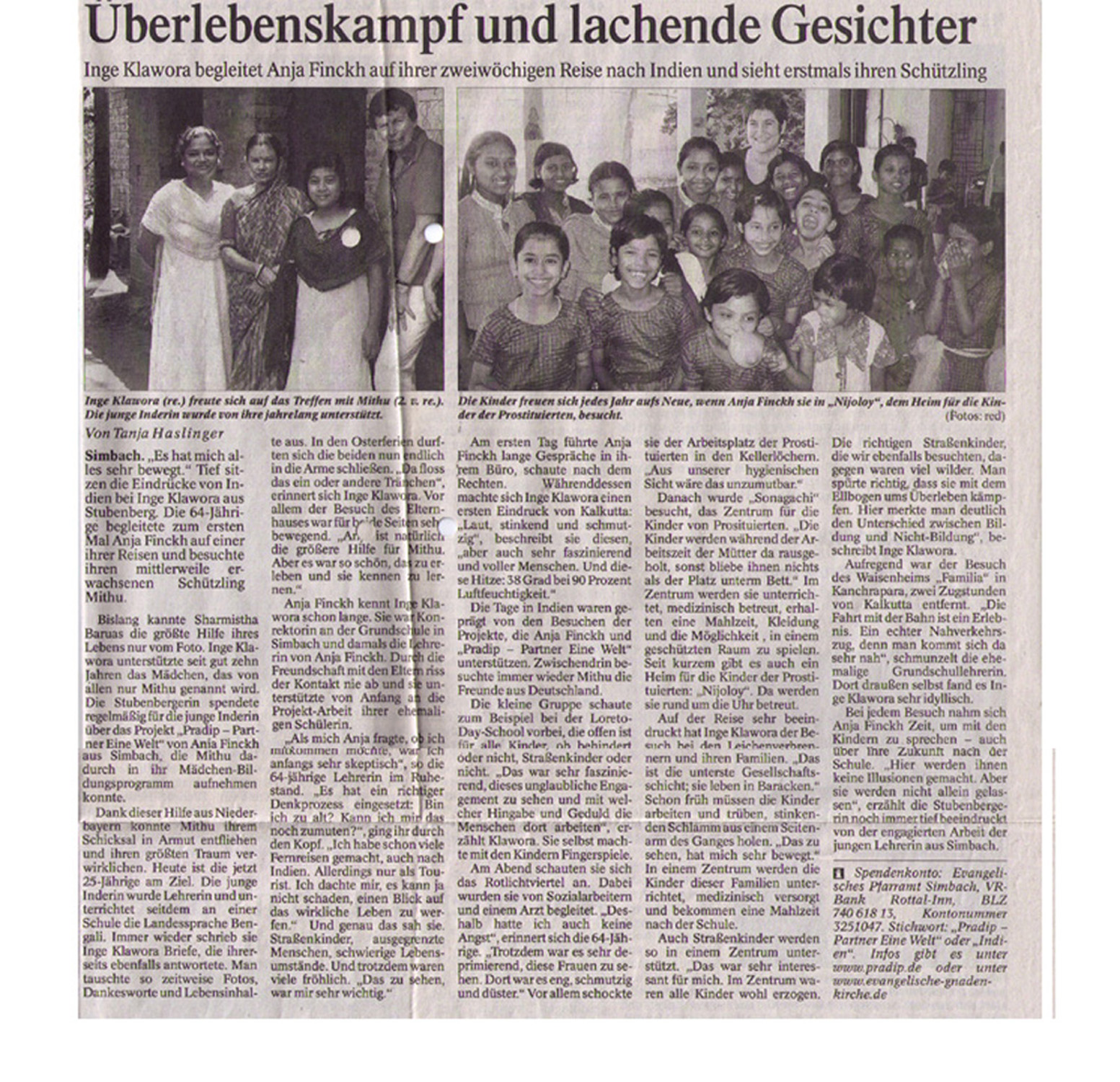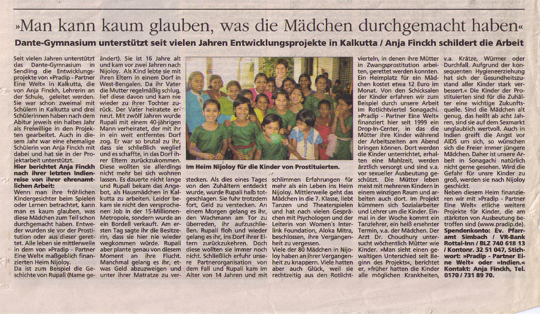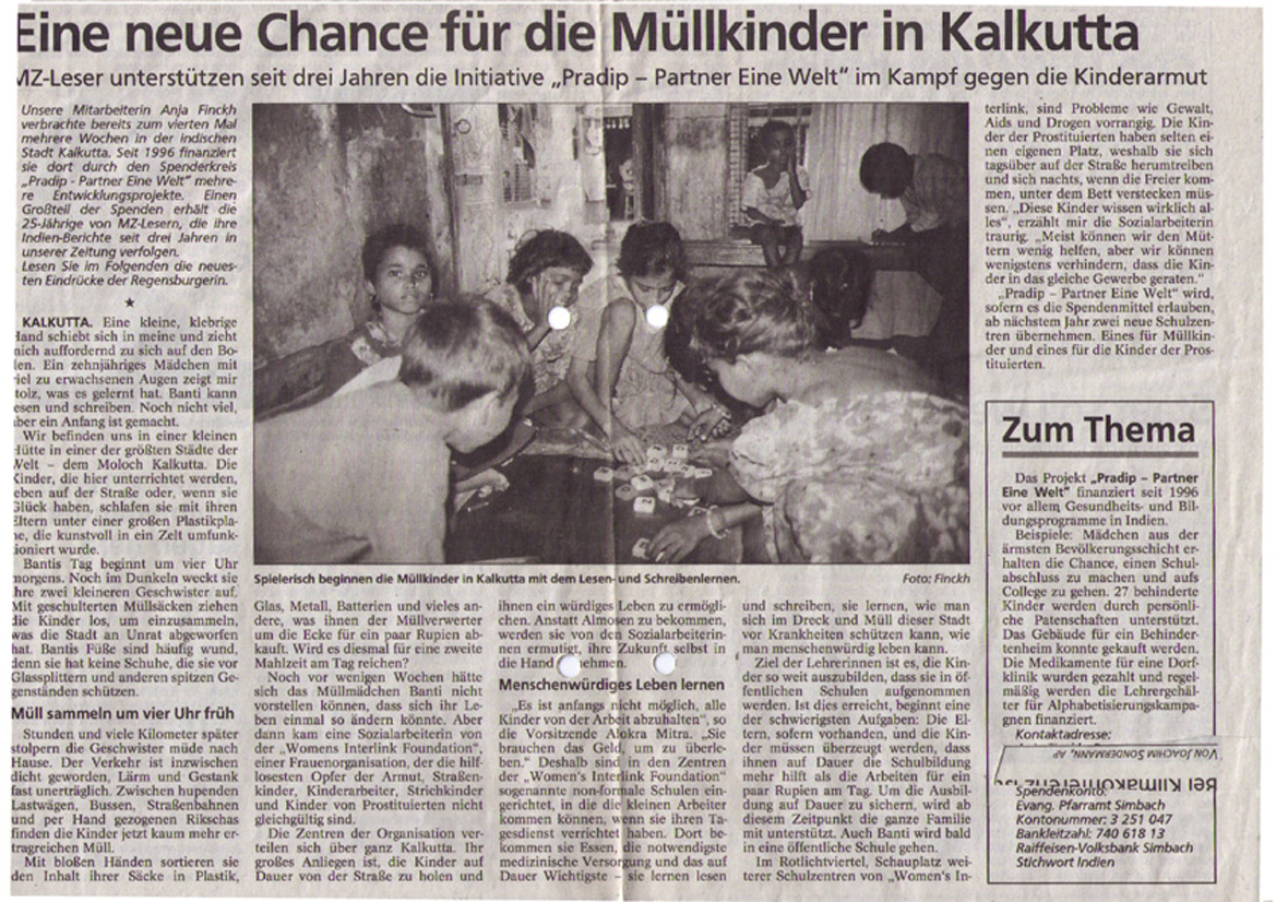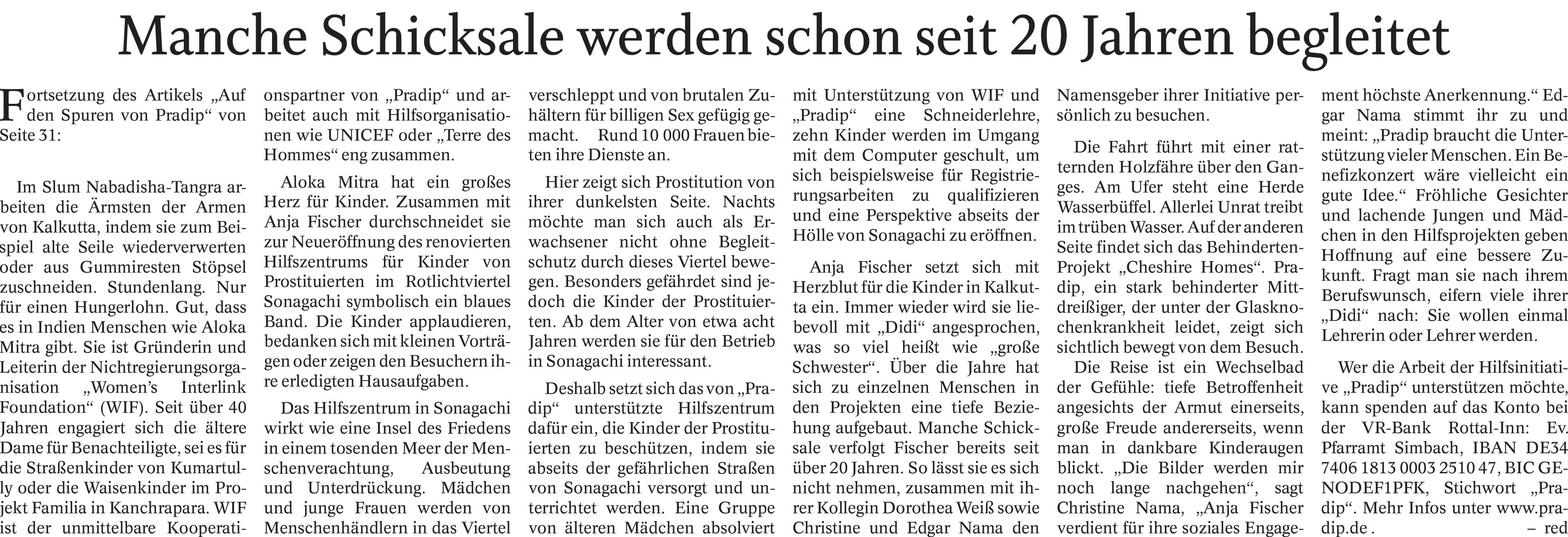 Presse Diese Artikel stellen eine Auswahl der Berichterstattung über Pradip-Partner Eine Welt dar. Passauer Neue Presse (11.10.2025) Sendlinger Anzeiger (12.06.2025) Passauer Neue Presse (19.04.2025) Passauer Neue Presse (16.06.2023) Passauer Neue Presse (15.05.2021) Passauer Neue Presse (06.03.2020) Passauer Neue Presse (24.01.2019) Costa Blanca Nachrichten1/2 (11.05.2018) Costa Blanca Nachrichten2/2 (11.05.2018) Passauer Neue Presse, 1/2 (14.04.2018) Passauer Neue Presse, 2/2 (14.04.2018) Costa Blanca Nachrichten1/2 (26.05.2017) Costa Blanca Nachrichten2/2 (26.05.2017) Donaukurier (20.03.2018) Passauer Neue Presse (17.3.2017) Passauer Neue Presse(11.3.2016) Donaukurier(15.2.2014) Passauer Neue Presse(4.6.2012) Passauer Neue Presse(16.04.2011) Passauer Neue Presse(14.04.2011) Augsburger Allgemeine(10.12.2010) Passauer Neue Presse(23.04.2010) Passauer Neue Presse(6.6.2009) Sendlinger Anzeiger(30.04.2008) Passauer Neue Presse(07.04.2008) Passauer Neue Presse(26.04.2007) Passauer Neue Presse(11.04.2006) Mittelbayerische Zeitung(25.06.2005) Mittelbayerische Zeitung(13.12.2003) Passauer Neue Presse(17.09.2003) Passauer Neue Presse(10.11.1999) Mittelbayerische Zeitung(26.10.1999) Mittelbayerische Zeitung... TZ...