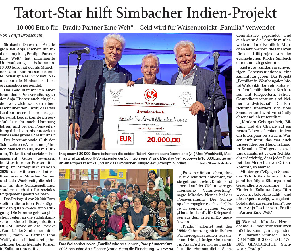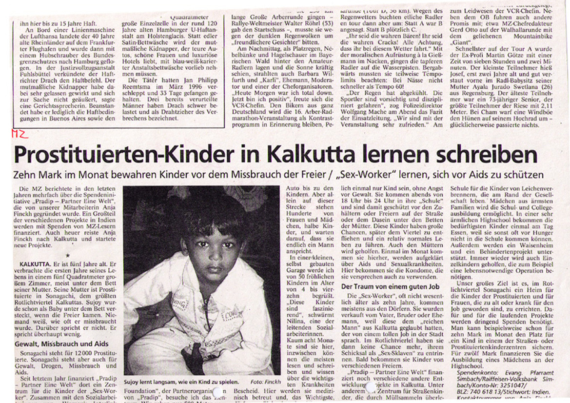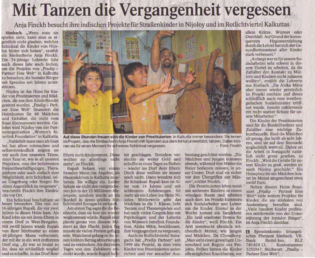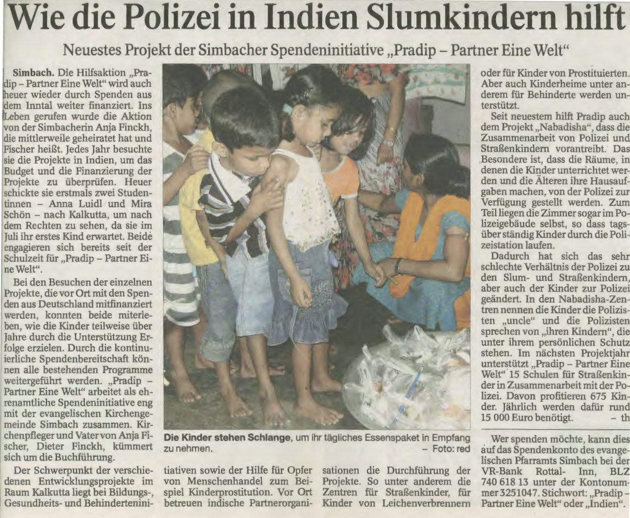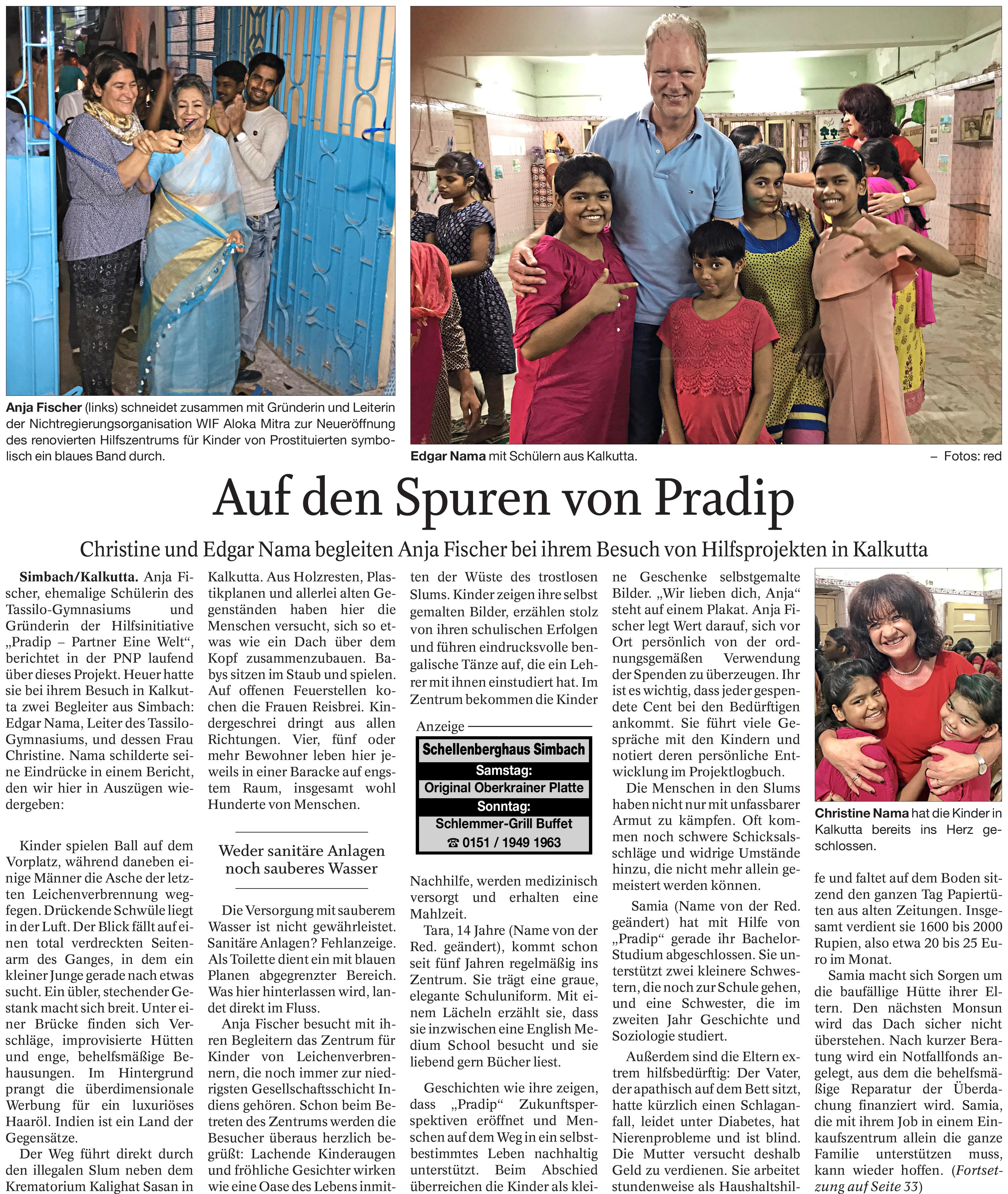 Presse Diese Artikel stellen eine Auswahl der Berichterstattung über Pradip-Partner Eine Welt dar. Passauer Neue Presse (11.10.2025) Sendlinger Anzeiger (12.06.2025) Passauer Neue Presse (19.04.2025) Passauer Neue Presse (16.06.2023) Passauer Neue Presse (15.05.2021) Passauer Neue Presse (06.03.2020) Passauer Neue Presse (24.01.2019) Costa Blanca Nachrichten1/2 (11.05.2018) Costa Blanca Nachrichten2/2 (11.05.2018) Passauer Neue Presse, 1/2 (14.04.2018) Passauer Neue Presse, 2/2 (14.04.2018) Costa Blanca Nachrichten1/2 (26.05.2017) Costa Blanca Nachrichten2/2 (26.05.2017) Donaukurier (20.03.2018) Passauer Neue Presse (17.3.2017) Passauer Neue Presse(11.3.2016) Donaukurier(15.2.2014) Passauer Neue Presse(4.6.2012) Passauer Neue Presse(16.04.2011) Passauer Neue Presse(14.04.2011) Augsburger Allgemeine(10.12.2010) Passauer Neue Presse(23.04.2010) Passauer Neue Presse(6.6.2009) Sendlinger Anzeiger(30.04.2008) Passauer Neue Presse(07.04.2008) Passauer Neue Presse(26.04.2007) Passauer Neue Presse(11.04.2006) Mittelbayerische Zeitung(25.06.2005) Mittelbayerische Zeitung(13.12.2003) Passauer Neue Presse(17.09.2003) Passauer Neue Presse(10.11.1999) Mittelbayerische Zeitung(26.10.1999) Mittelbayerische Zeitung... TZ...