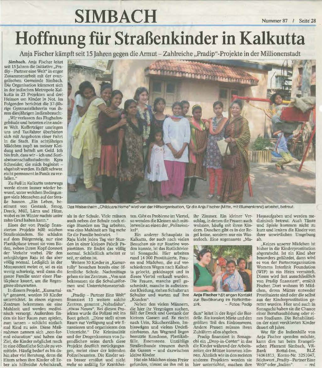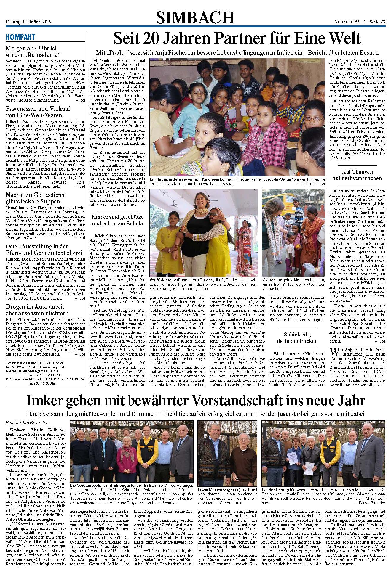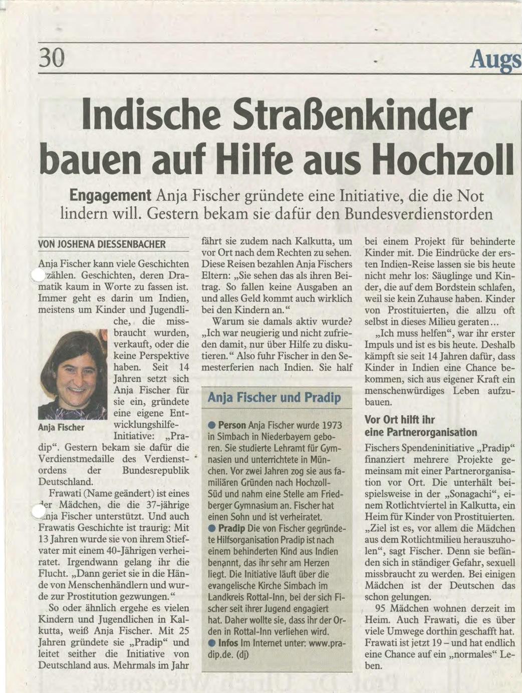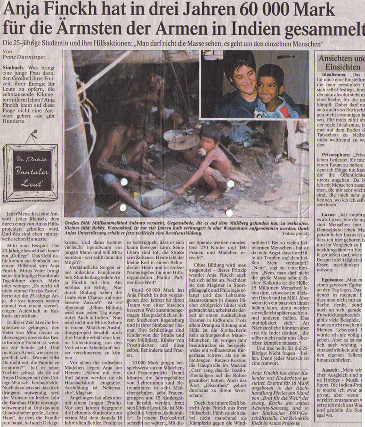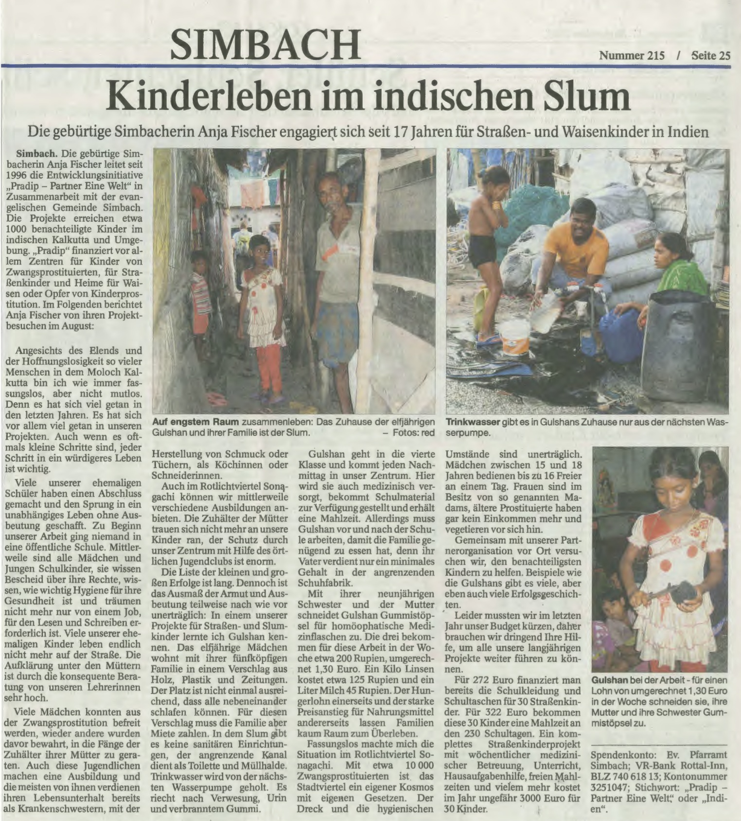 Presse Diese Artikel stellen eine Auswahl der Berichterstattung über Pradip-Partner Eine Welt dar. Passauer Neue Presse (11.10.2025) Sendlinger Anzeiger (12.06.2025) Passauer Neue Presse (19.04.2025) Passauer Neue Presse (16.06.2023) Passauer Neue Presse (15.05.2021) Passauer Neue Presse (06.03.2020) Passauer Neue Presse (24.01.2019) Costa Blanca Nachrichten1/2 (11.05.2018) Costa Blanca Nachrichten2/2 (11.05.2018) Passauer Neue Presse, 1/2 (14.04.2018) Passauer Neue Presse, 2/2 (14.04.2018) Costa Blanca Nachrichten1/2 (26.05.2017) Costa Blanca Nachrichten2/2 (26.05.2017) Donaukurier (20.03.2018) Passauer Neue Presse (17.3.2017) Passauer Neue Presse(11.3.2016) Donaukurier(15.2.2014) Passauer Neue Presse(4.6.2012) Passauer Neue Presse(16.04.2011) Passauer Neue Presse(14.04.2011) Augsburger Allgemeine(10.12.2010) Passauer Neue Presse(23.04.2010) Passauer Neue Presse(6.6.2009) Sendlinger Anzeiger(30.04.2008) Passauer Neue Presse(07.04.2008) Passauer Neue Presse(26.04.2007) Passauer Neue Presse(11.04.2006) Mittelbayerische Zeitung(25.06.2005) Mittelbayerische Zeitung(13.12.2003) Passauer Neue Presse(17.09.2003) Passauer Neue Presse(10.11.1999) Mittelbayerische Zeitung(26.10.1999) Mittelbayerische Zeitung... TZ...